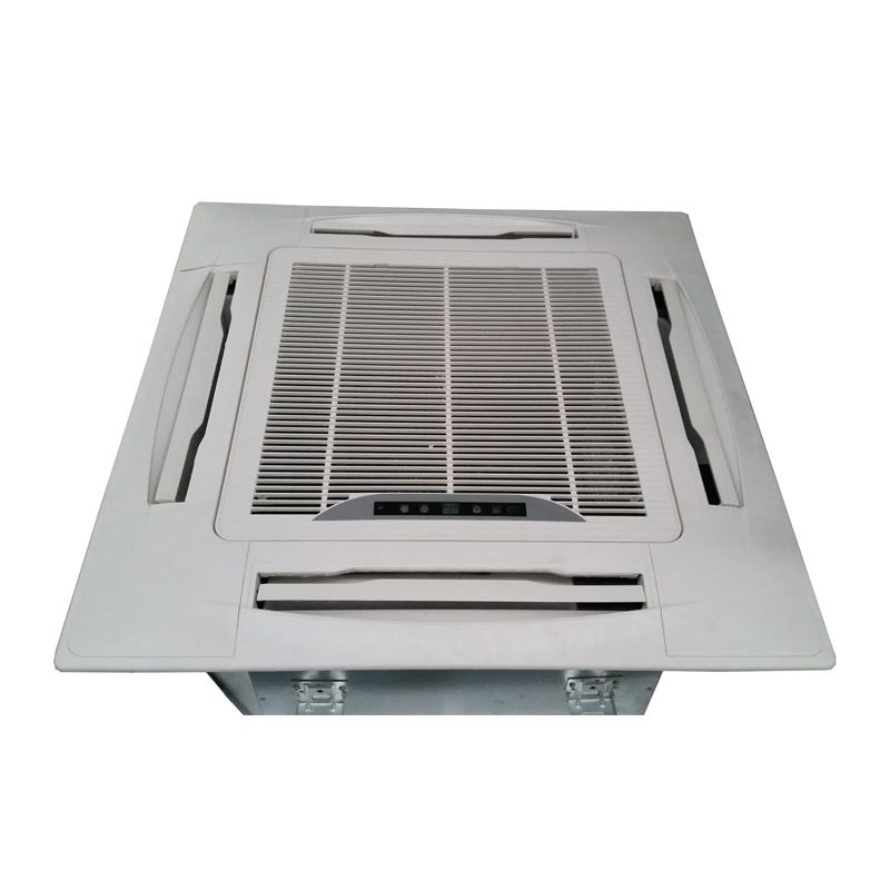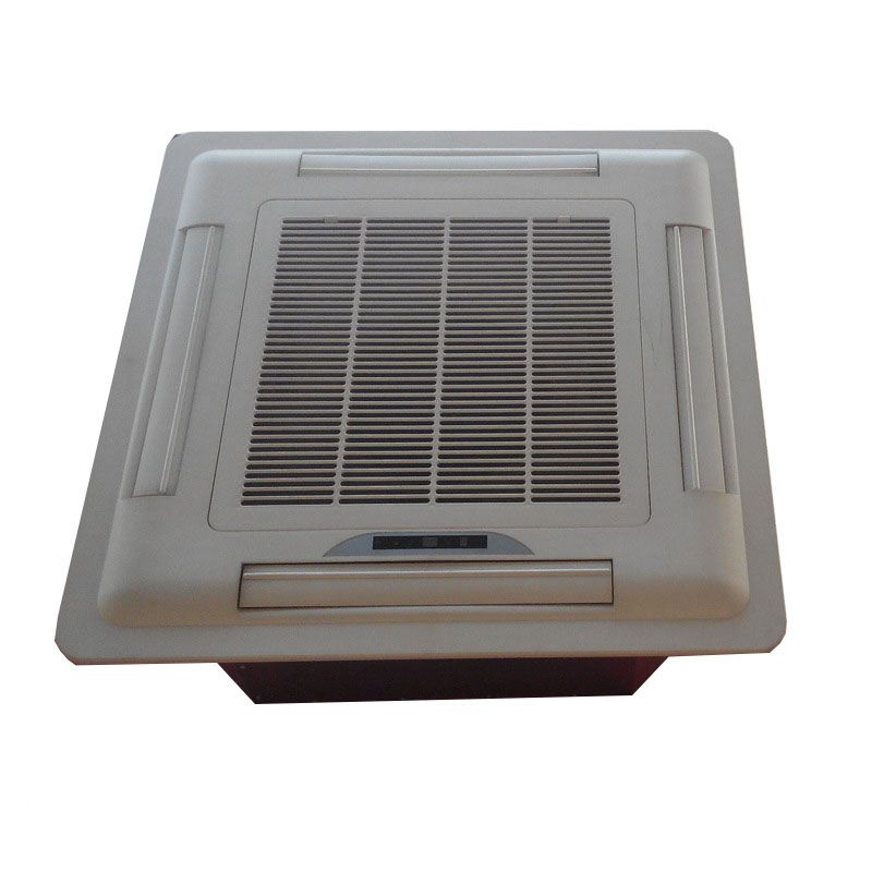 FP-KM卡式明裝四出風風機盤管機組可理想的放入天花板內,結合室內裝修,只有風口露在天花板外,風口美觀,不占空間,維修方便。